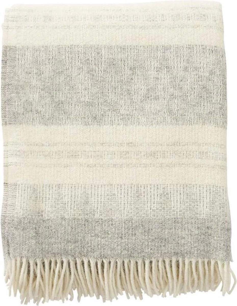 Plaid Freja is gemaakt van deze 100% lokale Zweedse wol, plaid Freja is 130×200 cm en heeft witte franjes.