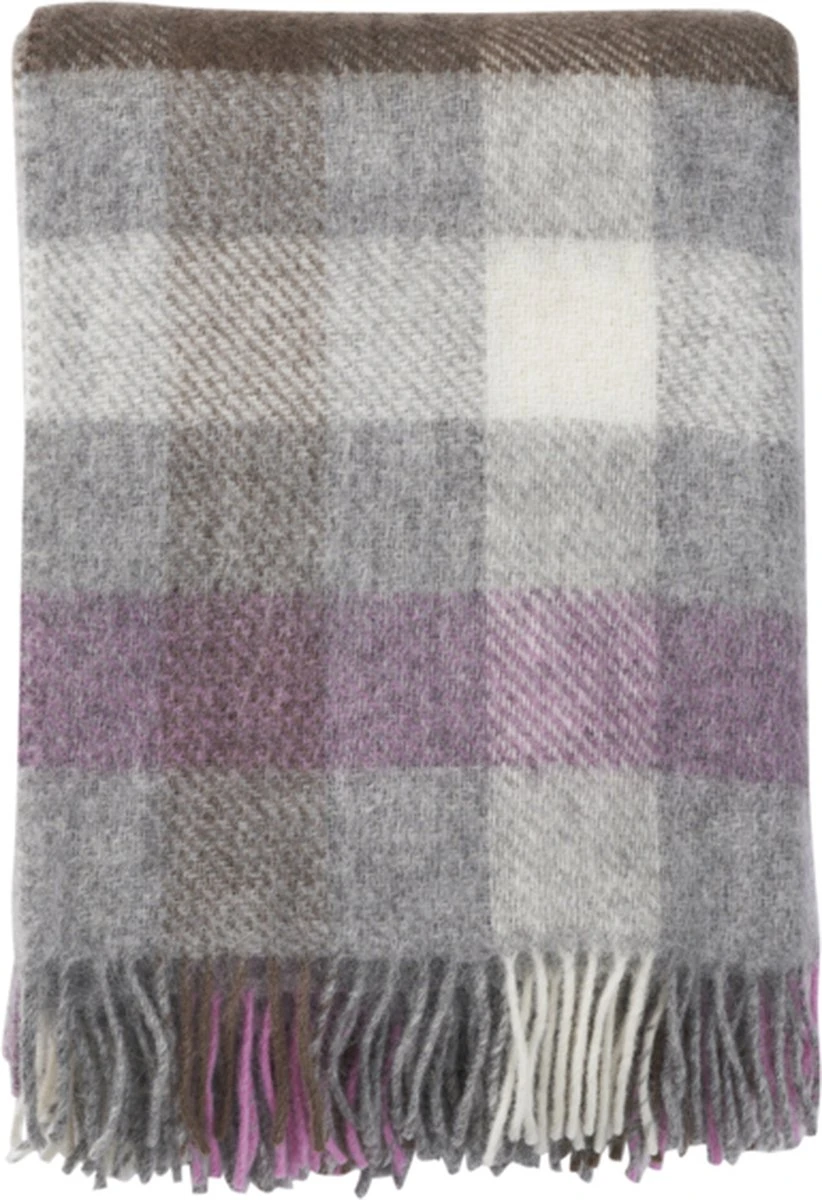 Kleur: grijze plaid met blokmotief in grijs bruin roze en wolwit