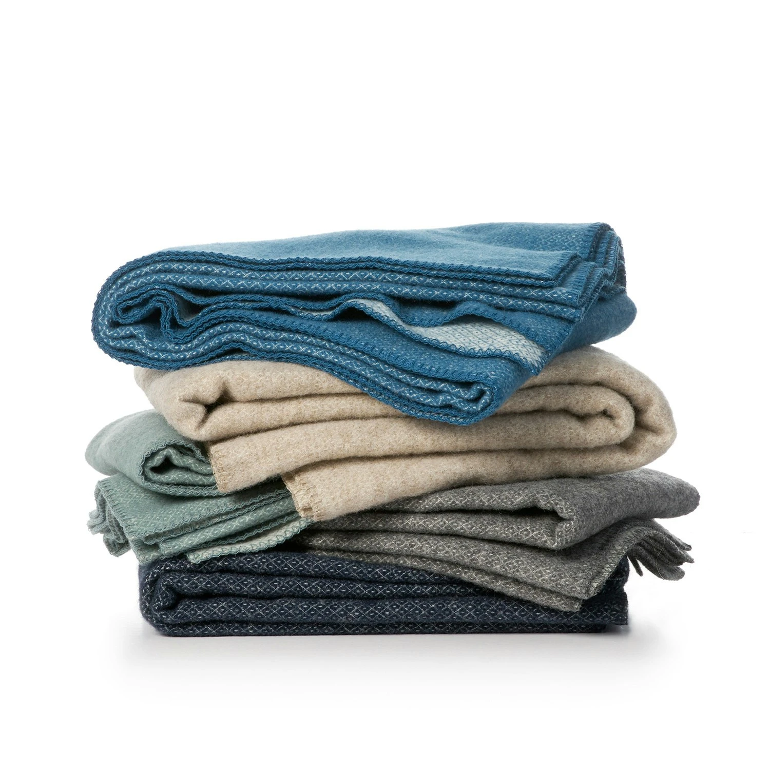 These beautiful wool throws are made of in 60% merino & 40% lamb wool. Machine wash at 30 Celsius. Use only a program made for wool. Wash separately & iron on low temp. Do not tumble or use bleach.