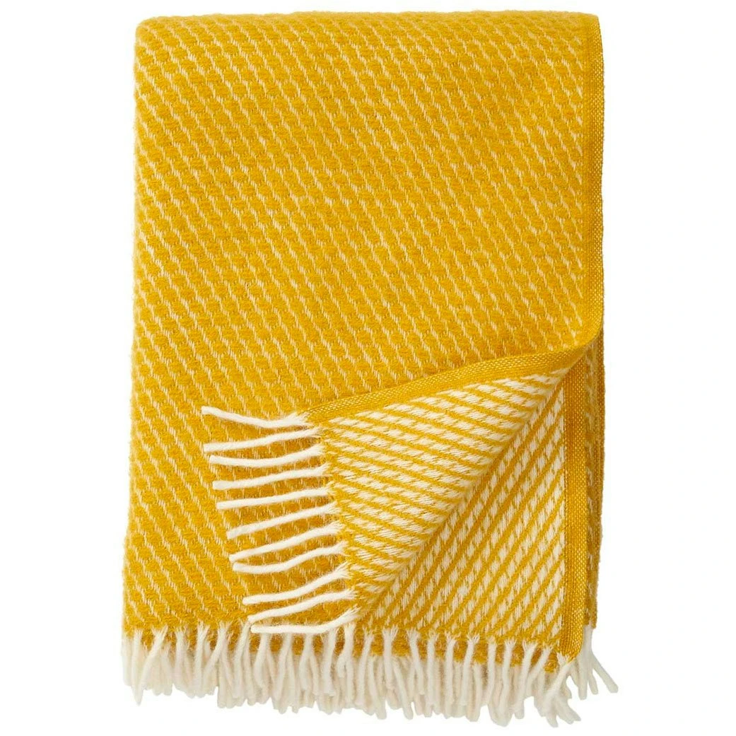 Velvet is a lovely throw from Klippan Yllefabrik in 100% lamb wool with a nice pattern that gives texture and fits both on the sofa and in the bed. Lamb wool means that it is the first cut of a sheep that is no more than six months old. The short sides are decorated with fringes and the dimensions of the throw are 130×200 centimetres.